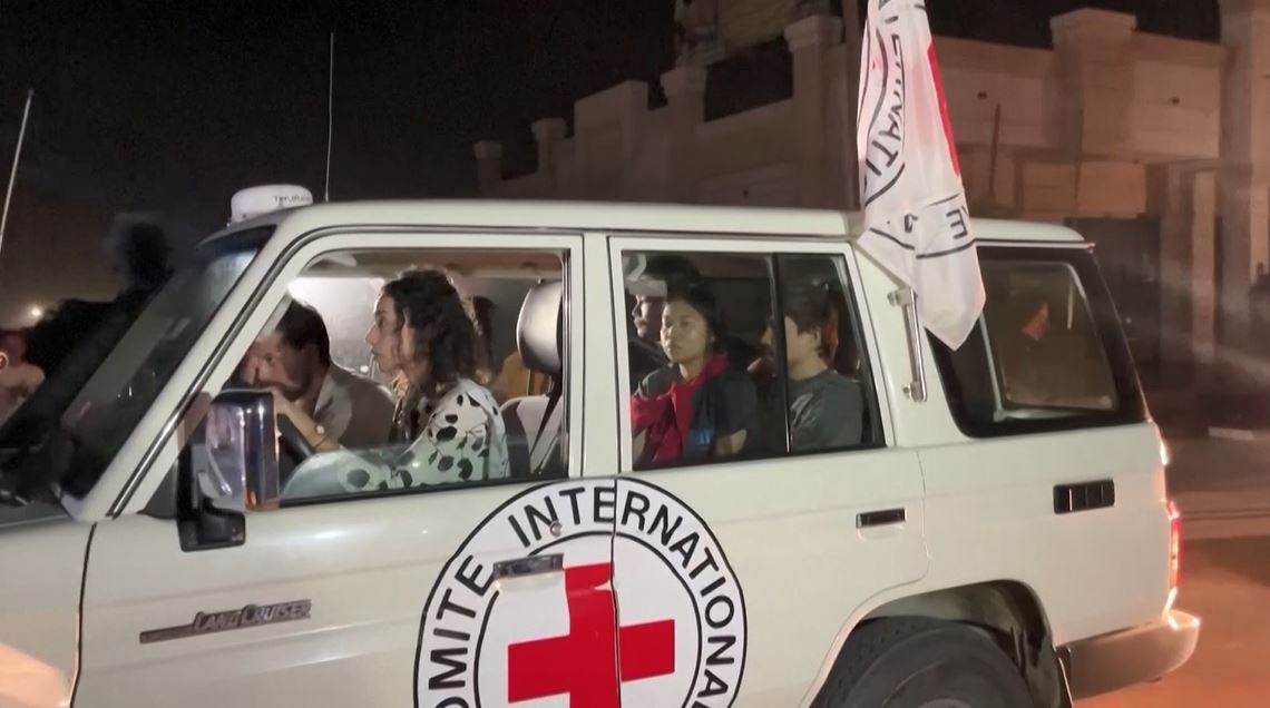Fighting in Gaza and Israel’s bombardment of the territory ceased on Friday morning, hours before Red Cross trucks ferried the hostages into Egypt as night fell.