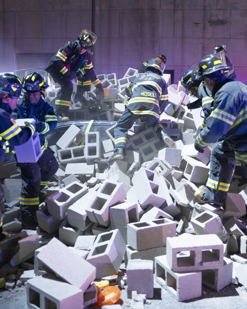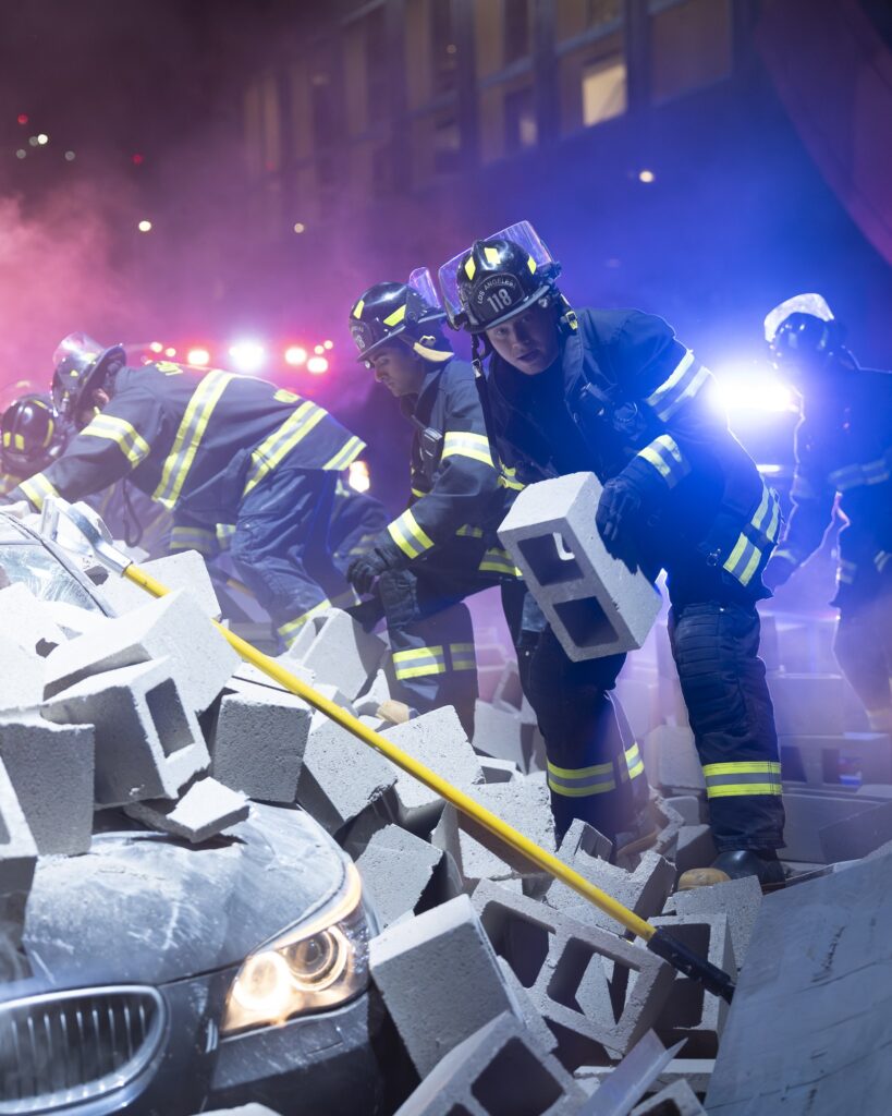 In this exclusive sneak peek from 9-1-1 Season 9 Episode 12, the 118 is called to the scene after a car is nearly buried by cinder blocks on the Los Angeles freeway.